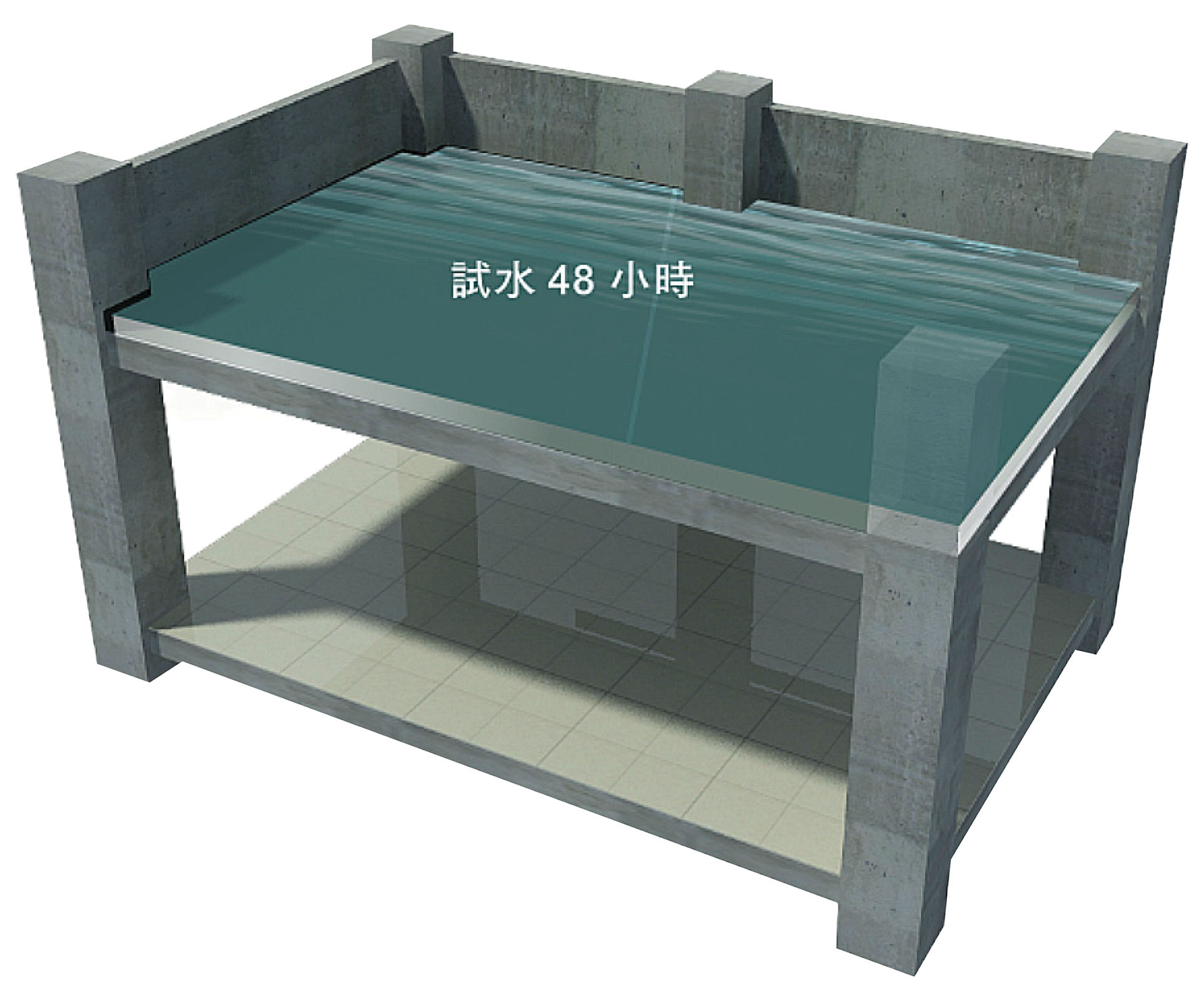 →塗佈複合彈泥第二道→塗佈複合彈泥第三道→試水48小時→地坪保護層施作